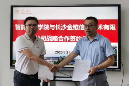 8月16日上午,我校与长沙金维信息技术有限公司(以下简称“长沙金维”)战略合作协议签约仪式在东方红校区百熙楼911会议室举行。长沙金维总工程师蒋云翔、技术总监甘雨、专用产品部经理陈宇、软件部经理刘勇、技术部经理刘旭华,伟德bv1946官网院长满君丰、副书记陈阳等出席签约仪式。仪式由陈阳主持,在签约仪式后双方举行了座谈交流。