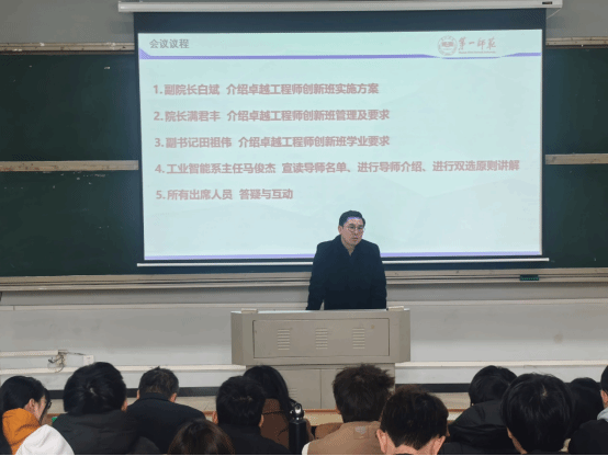 为促进师生交流,推动人才培养,激发创新活力,12月18日我院在怀中南106教室召开工业智能“润之卓越班”导师与学生双选会。院长满君丰、院党委副书记(主持党务工作)田祖伟、副院长白斌、工业智能专业润之卓越班导师团队及辅导员参加会议,会议由工业智能系主任马俊杰主持。