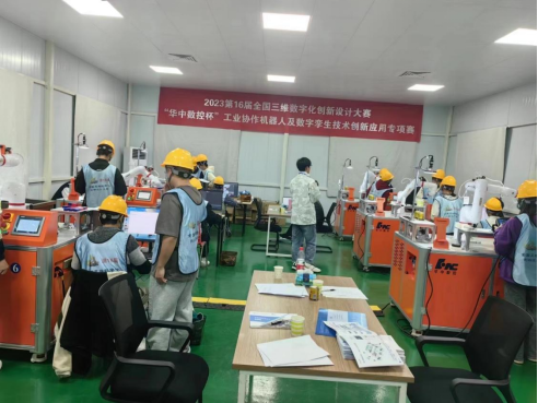 据悉,全国三维数字化创新设计大赛是全国普通高校学科竞赛排行榜赛事之一,目前已列入“高校竞赛评估与管理体系”目录。“华中数控杯”工业协作机器人及数字孪生技术创新应用专项赛是全国三维数字化创新设计大赛中的一个专项赛事,目标是提高大学生创新意识与创造能力,提升学生的机械创新设计、机械系统设计、控制系统设计、人工智能与优化等能力,以解决机器人工程领域的复杂工程问题为主线培养高素质技术型、应用型、复合型人才。