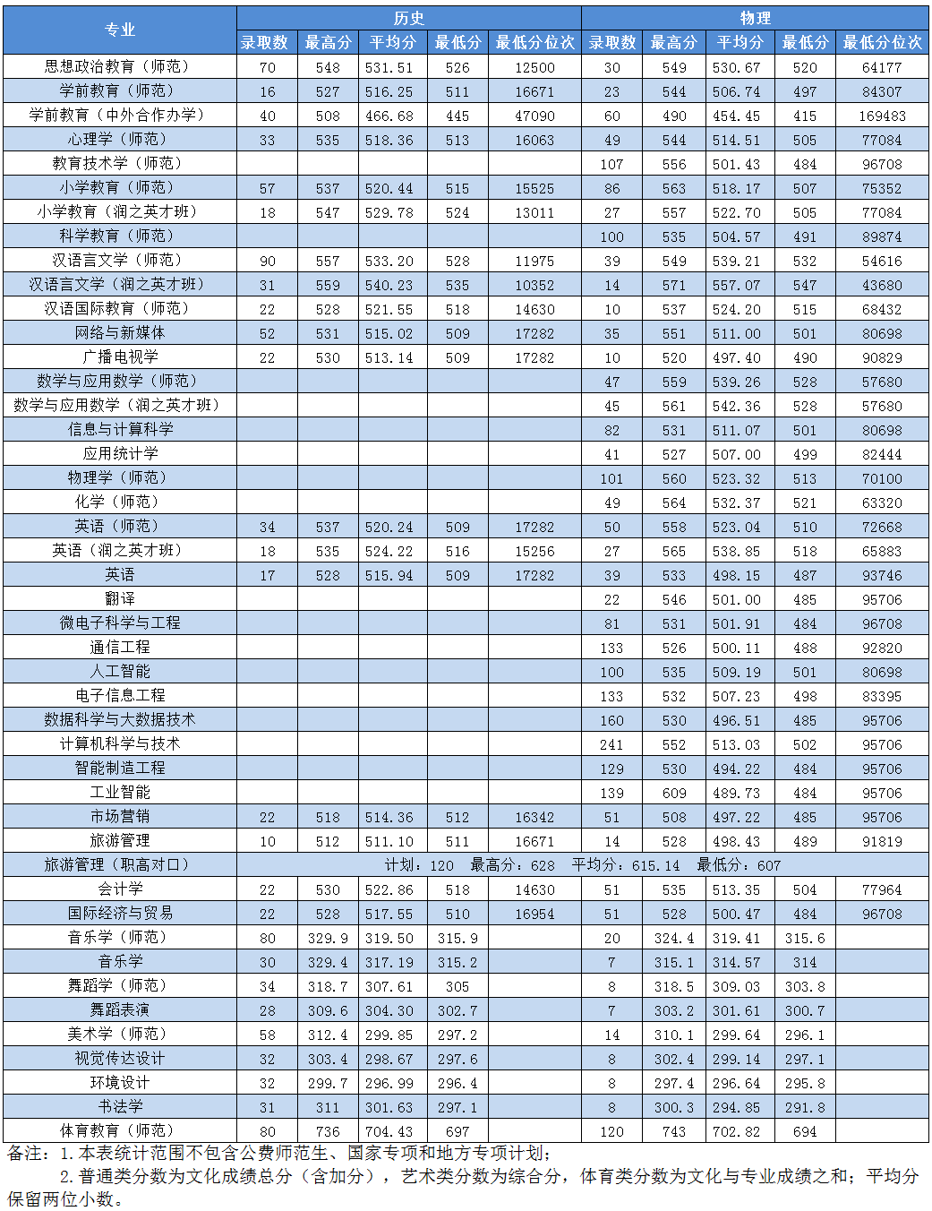 2023年我校湖南省招生情况统计(按专业)