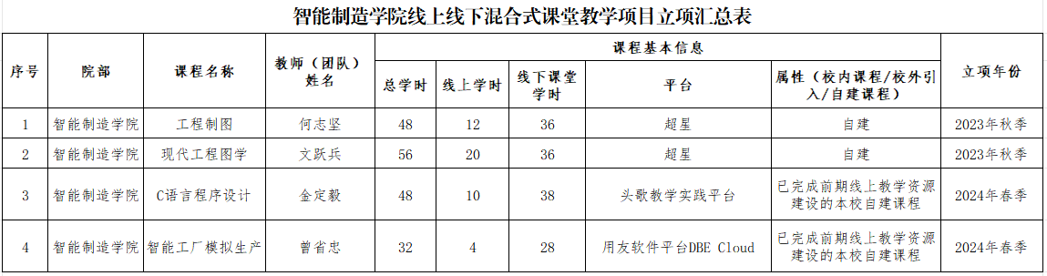 伟德bv1946官网线上线下混合式课堂教学项目立项汇总表